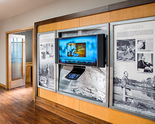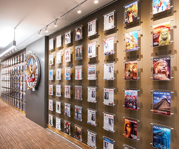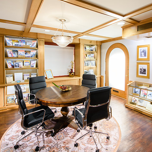Les corridors historiques du studio abritent également les bureaux et les salles de montage. Les équipes de création peuvent donc travailler ensemble pour développer des scénarios et produire des projets de toutes sortes, y compris des documentaires sur nos programmes humanitaires, un aperçu de la Scientologie en tant que mouvement international et des présentations sur la vie et l’héritage du fondateur de la Scientologie, Ron Hubbard.