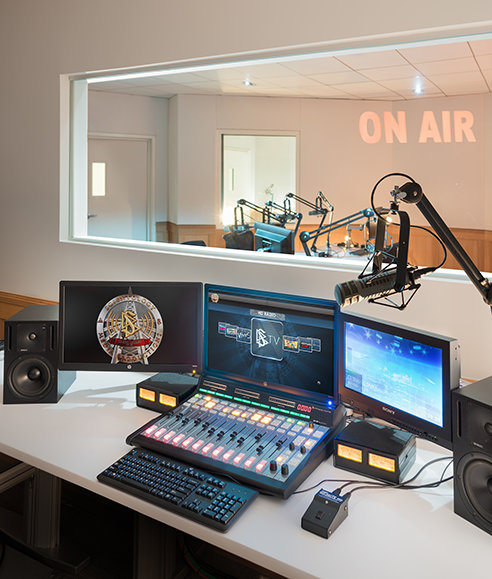 dispose d’installations pour les bandes musicales et la post-production audio. Les trois salles de musique sont équipées du système audio Clearsound, conçu sur mesure pour assurer la plus haute qualité de son.