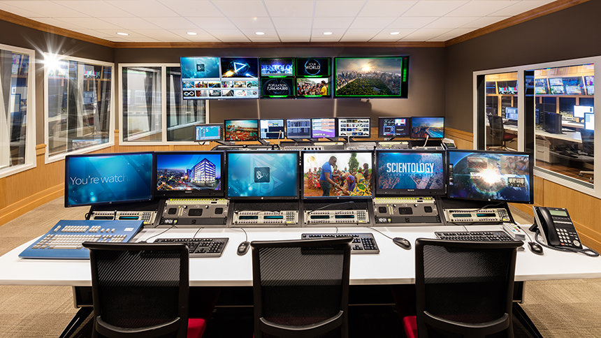 La salle de contrôle principale est le centre de diffusion de Scientology Media Productions. C’est le point d’émanation final de la transmission de tous les programmes du nouveau canal de télévision de Scientologie.