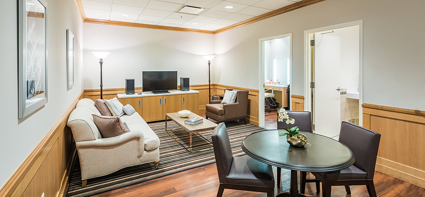 est peut-être le « joyau » de l’ensemble, avec ses colonnes romaines de style toscan, ses moulures faites à la main et son mobilier Art déco. Construit à l’origine pour être la salle de projection du studio, il sert aujourd’hui de foyer des artistes à ceux qui participent à des programmes produits ici, comme des talk-shows ou des téléthons.