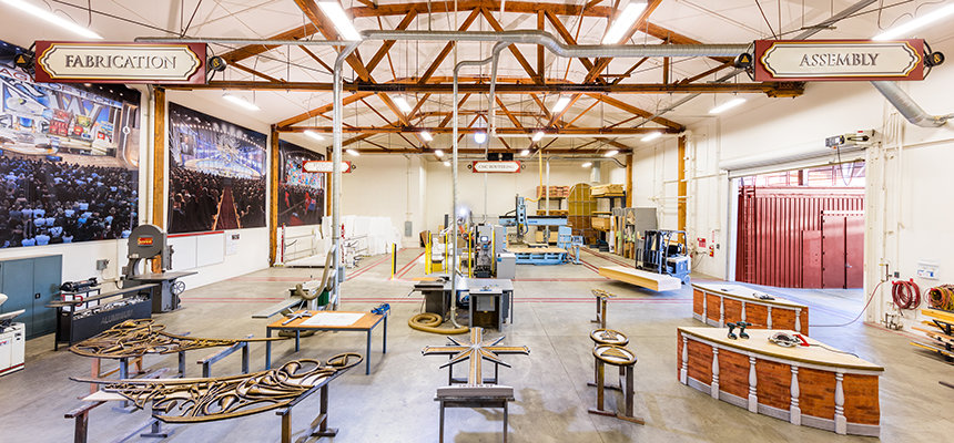 Situé dans ce qui était le premier studio d’enregistrement du complexe, l’atelier de décors est équipé de machines de haute technologie de dernière génération pour la construction d’installations et de décors en 3D.