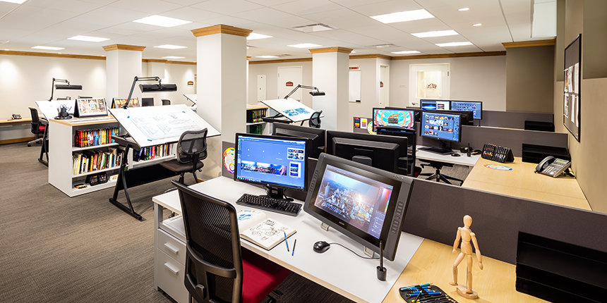 La combinaison de la vitesse et de la puissance informatique de vingt stations d’effets spéciaux permet de produire des images générées par ordinateur à un rythme suffisant pour répondre aux exigences de production du centre multimédia.