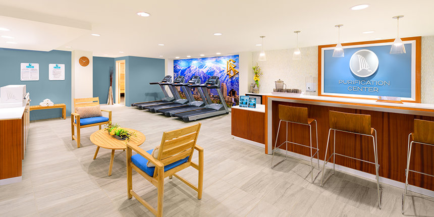Le Peaks Café offre un lieu de réunion pour ceux qui participent à des activités, comme pour les paroissiens pendant les pauses dans leurs services de Scientology.