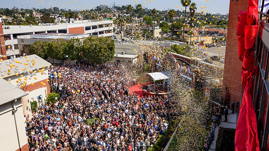 Le dernier orateur était Kevin James, directeur du City Film and TV Office de Los Angeles « Du point de vue de la ville et de la sécurité publique, j’admire votre dévouement à être un si bon partenaire sur le terrain. J’ai aussi appris à admirer le professionnalisme et la bonne volonté avec lesquels vous avez établi vos relations avec nous, la Ville de Los Angeles. Vous êtes prêts à être des partenaires de la ville. Et cela signifie énormément pour nous. Mais, avec ce nouveau studio que nous célébrons aujourd’hui, je dirais que notre partenariat a pris une toute nouvelle dimension. »