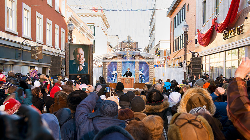 Quinze cents scientologues et visiteurs venus de tout le Canada et des États-Unis se pressaient devant le 665, rue Saint-Joseph, au cœur du quartier Nouveau Saint-Roch dans la Basse-Ville de Québec, pour assister à l’inauguration de l’Église de Scientologie de Québec, le 30 janvier 2010.