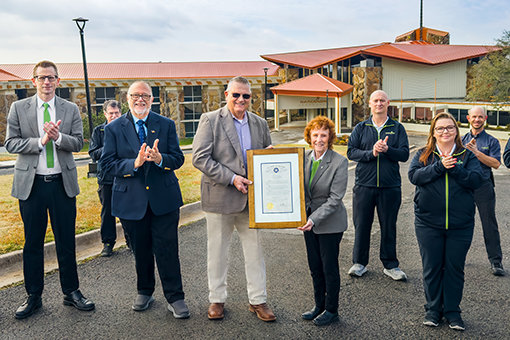 L’auditoire était émerveillé alors qu’il entendait la voix de LRH décrivant le site comme « un endroit magnifique... au beau milieu d’un verger d’agrumes ». On a même donné aux participants la rare occasion de voir une vidéo inédite de 15 secondes de LRH lui-même, marchant autour de la piscine en forme de goutte d’eau — tout cela à présent entièrement restauré.